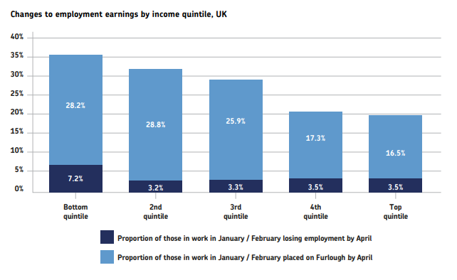 Although the impact of employment and earnings loss on household income is lessened by the Job Retention Scheme and Self-Employment Income Support Scheme, hardship is expected across the income distribution, and the consequences are likely to be more severe for lower-income families. They tend to spend more of their incomes on essentials, giving them less room to manoeuvre, and to have fewer, or no, savings to fall back on.