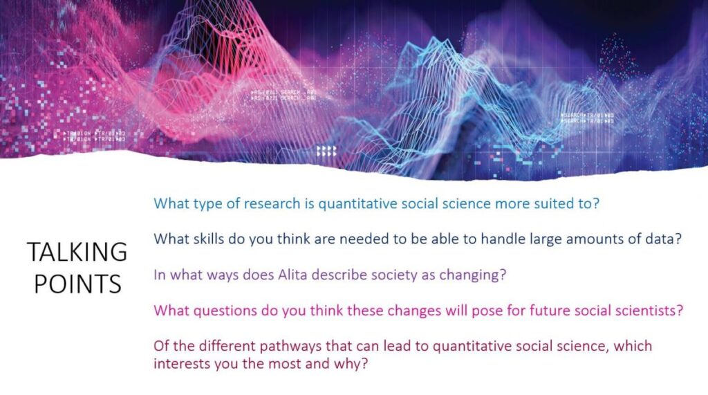 The pack of resources includes an article explaining Understanding Society and the work of Alita and Nicole, an activity sheet which provides talking points to prompt students to reflect on the research and challenge them to devise their own longitudinal survey, and a powerpoint to help structure the lesson and give further discussion questions. The lesson plan links to KS4 and KS5 Social Science, Economics, Sociology, Psychology, Computer Science and Maths. It can also be used as a careers resource.